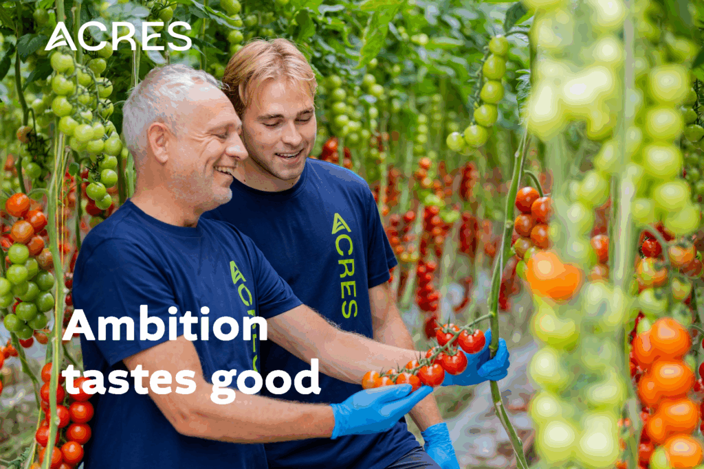 Mensen staan centraal bij ACRES. We zijn een open organisatie waar je initiatief kunt nemen en verantwoordelijkheid krijgt. Met plezier en passie telen we topkwaliteit tomaten en komkommers, maar we kijken verder dan de kas: met onze groenten dragen we bij aan een gezondere wereld. Verse, voedzame producten moeten voor iedereen bereikbaar zijn — hoe eerder, hoe beter.